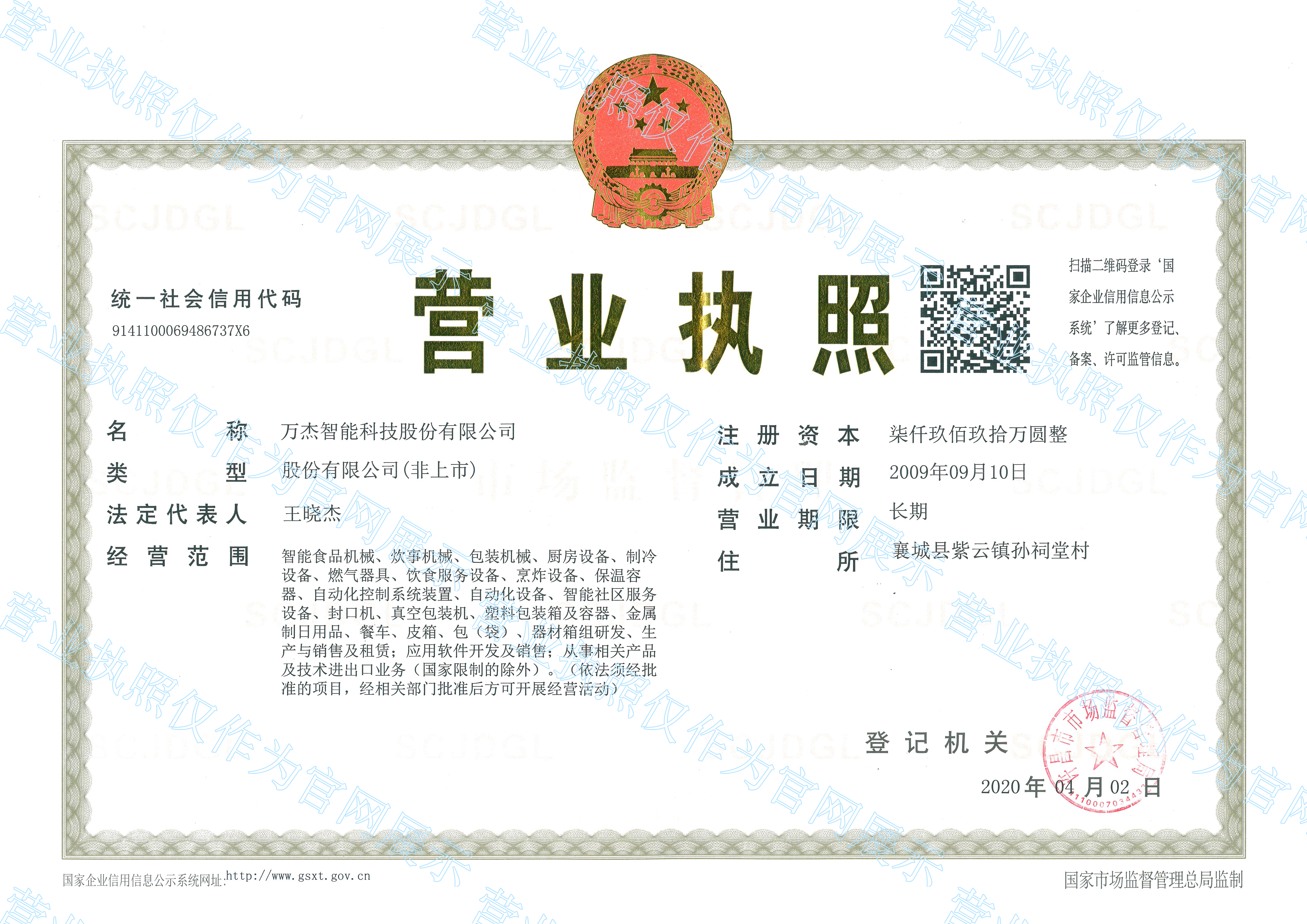 萬杰智能科技股份有限公司于1996年3月,一直致力于和面系列、揉面系列、饅頭系列、包餡系列、鮮食面條系列、蒸制系列、大型食品加工生產線系列等民族文化主食機械的研發、制造、營銷和服務。 十八年來,萬杰憑借著“講真話、做實事、先做強、再做大”的萬杰精神,實現食品機械diyi品牌,完成中式面點產業化系統商業模式,帶動民族文化主食健康發展的企業使命;成為中國文化主食機械的標準制定者,成為中式面點產業化系統的帶領者,成為一流人才的締造者的企業愿景。發展成為擁有300多名員工,各類技能人才占百分之七十以上;占地130.5畝,車間面積32000余平方米,擁有各類機械加工設備110余臺,年產16000多臺/套的現代化企業 。